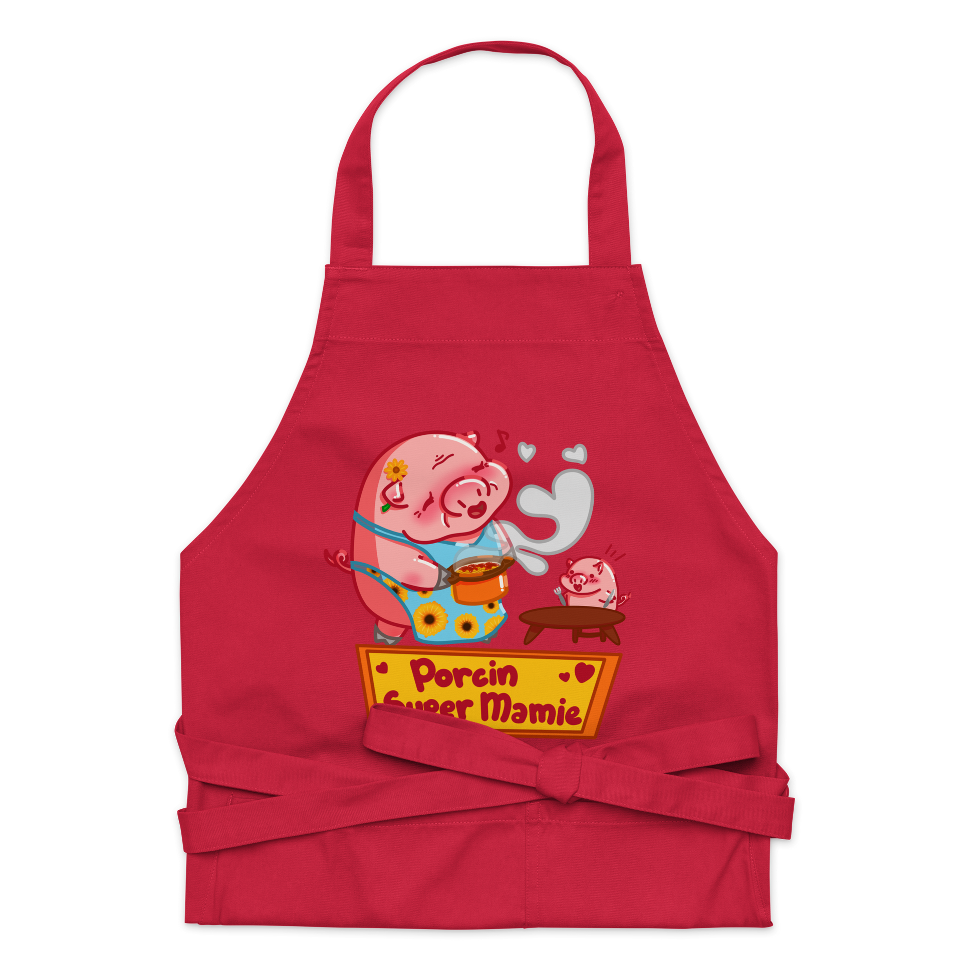 Parce que ta Mamie mérite de pouvoir continuer à nourrir les gens qu'elle aime (toi) avec style, nos petits cochons ont préparé rien que pour toi ce tablier à l'épreuve des plats en sauce, des casseroles brûlantes et de toute attaque de gras pernicieux ! 🐷✨